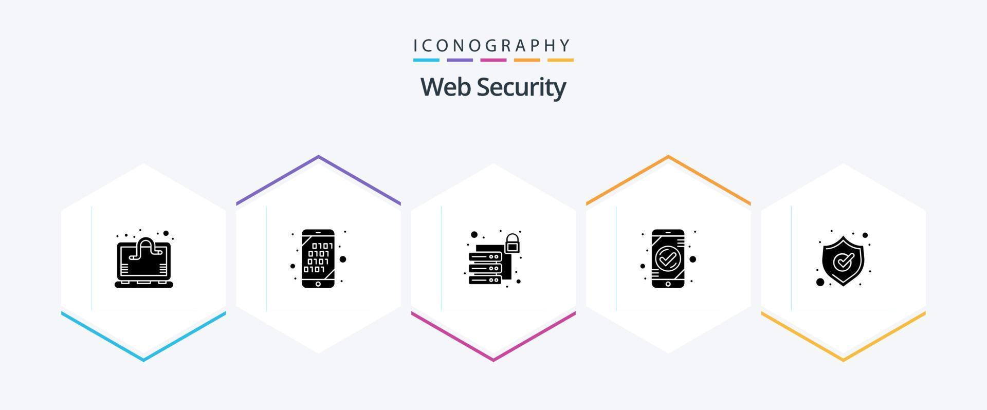 Web Security 25 Glyph icon pack including security. ok. database. mobile. authentication vector