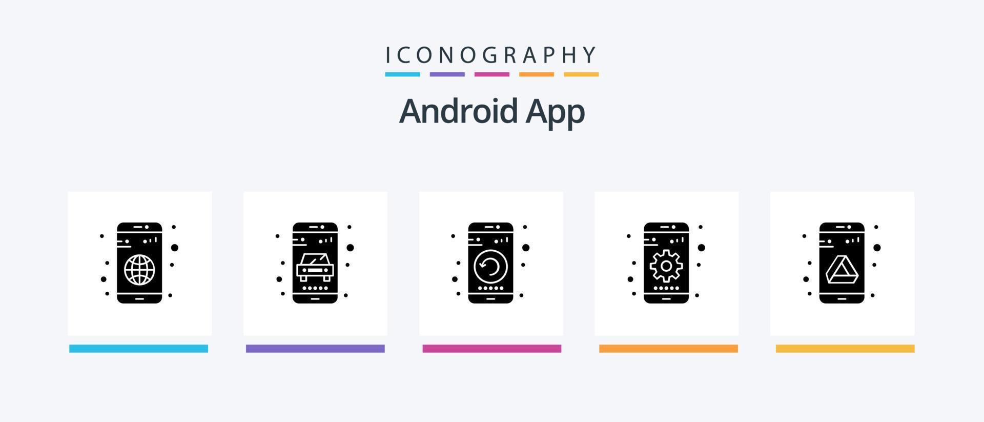 Android App Glyph 5 Icon Pack Including app. setting. application. mobile. restart. Creative Icons Design vector