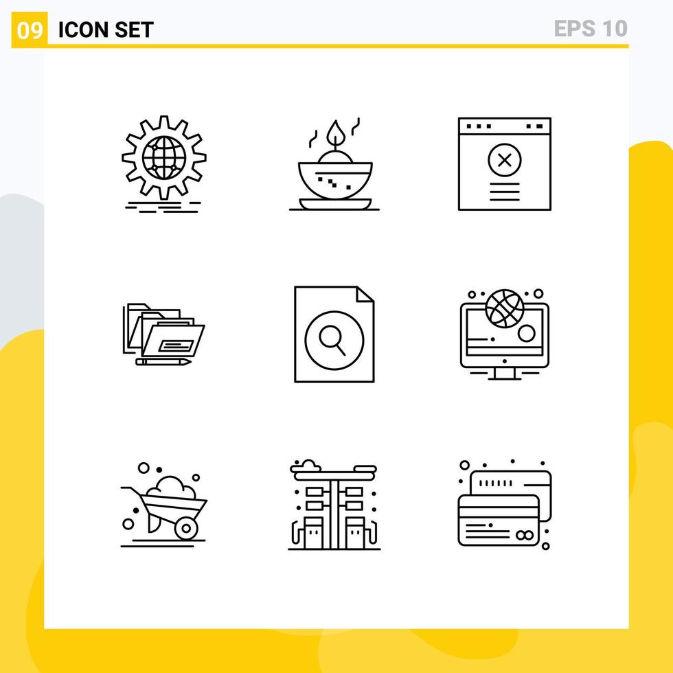 User Interface Pack of 9 Basic Outlines of search document block safe folder Editable Vector Design Elements Free Vector