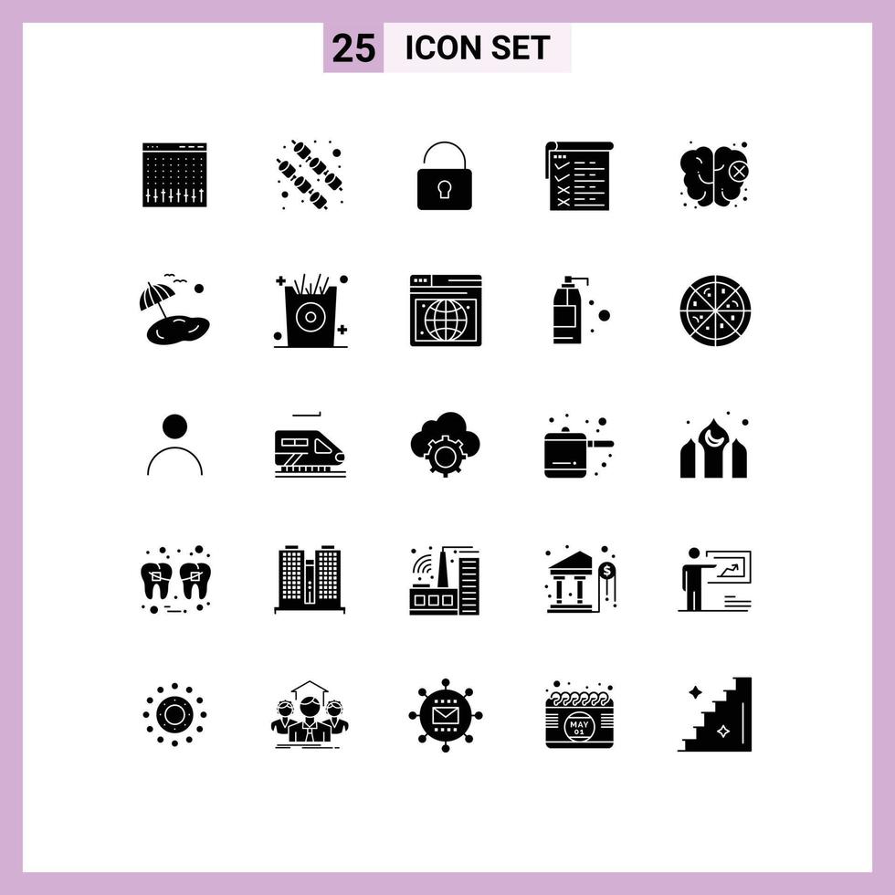 Set of 25 Modern UI Icons Symbols Signs for mind brain unlock qa testing Editable Vector Design Elements