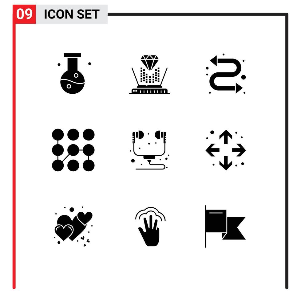 User Interface Pack of 9 Basic Solid Glyphs of hardware security diamond secure pattern Editable Vector Design Elements