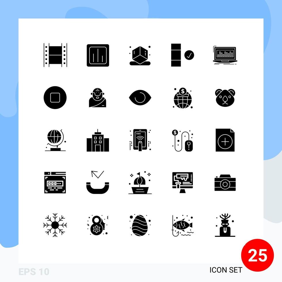 Mobile Interface Solid Glyph Set of 25 Pictograms of index data statistics data check Editable Vector Design Elements