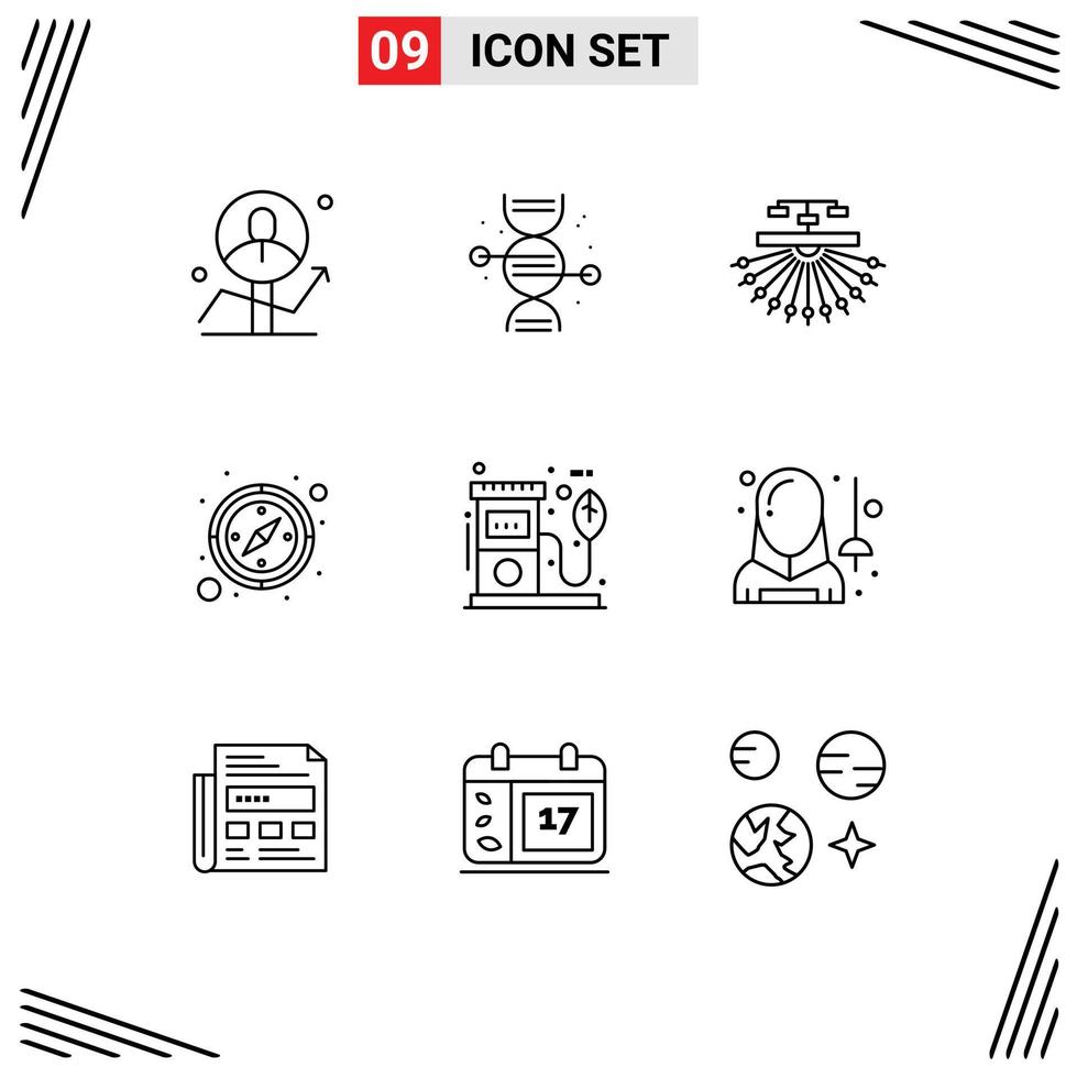 Pictogram Set of 9 Simple Outlines of eco direction bone compass structure Editable Vector Design Elements