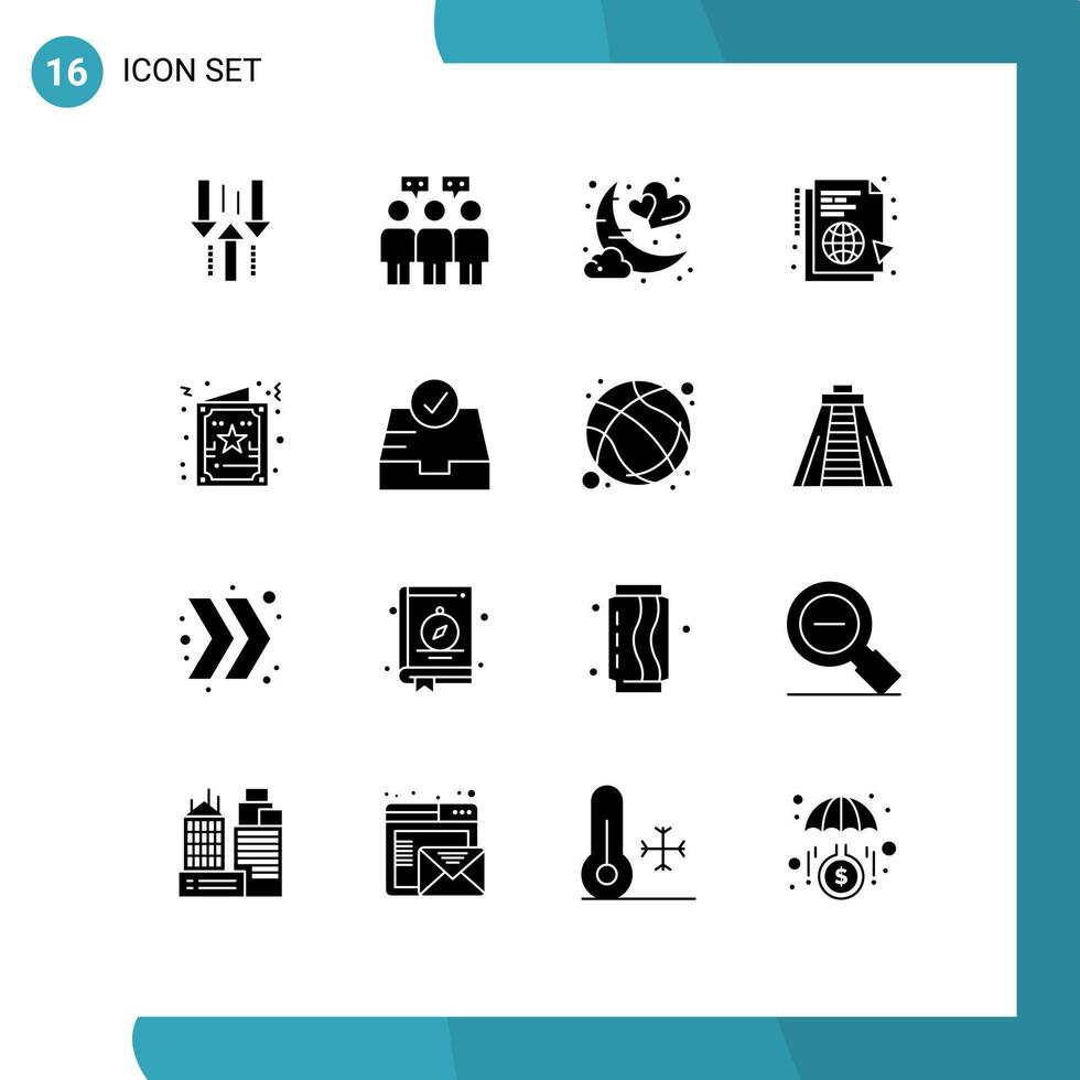 Set of 16 Vector Solid Glyphs on Grid for sync globe date file romantic Editable Vector Design Elements