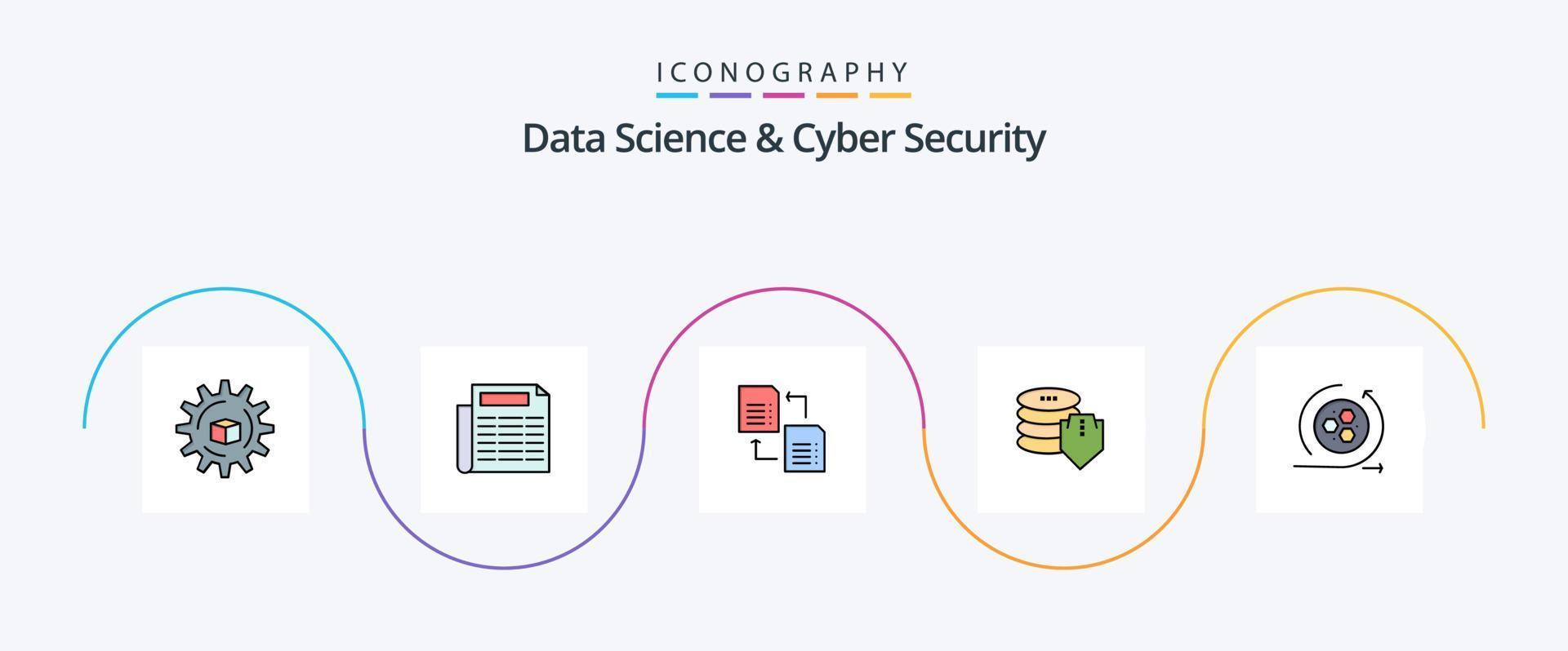 Data Science And Cyber Security Line Filled Flat 5 Icon Pack Including modeling. modeling. file. secure. dollar vector