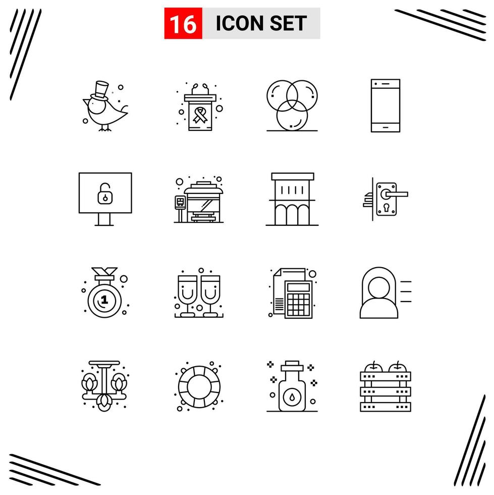 Stock Vector Icon Pack of 16 Line Signs and Symbols for smart phone phone coding contact programing Editable Vector Design Elements Free Vector