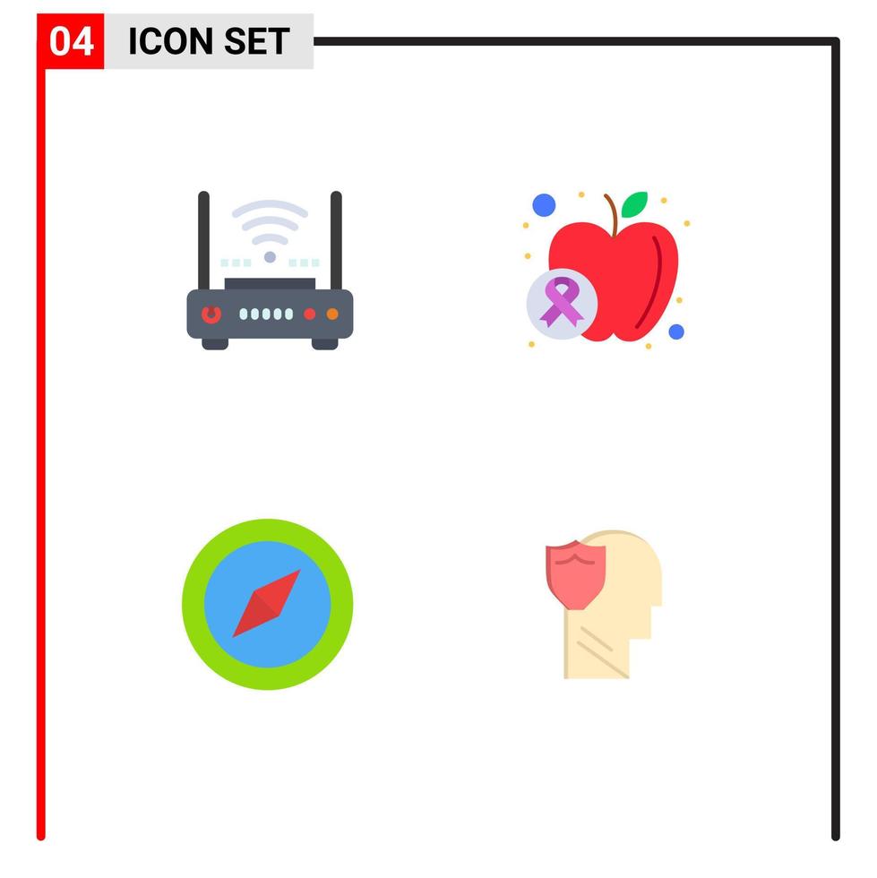 Pictogram Set of 4 Simple Flat Icons of router compass internet fruit map Editable Vector Design Elements