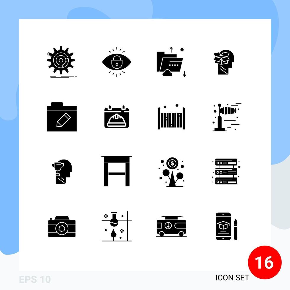 Set of 16 Vector Solid Glyphs on Grid for user unbox lock box multimedia Editable Vector Design Elements Free Vector
