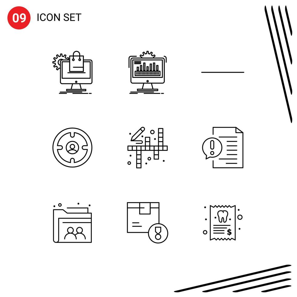9 Outline concept for Websites Mobile and Apps activities head monitoring find business Editable Vector Design Elements Free Vector