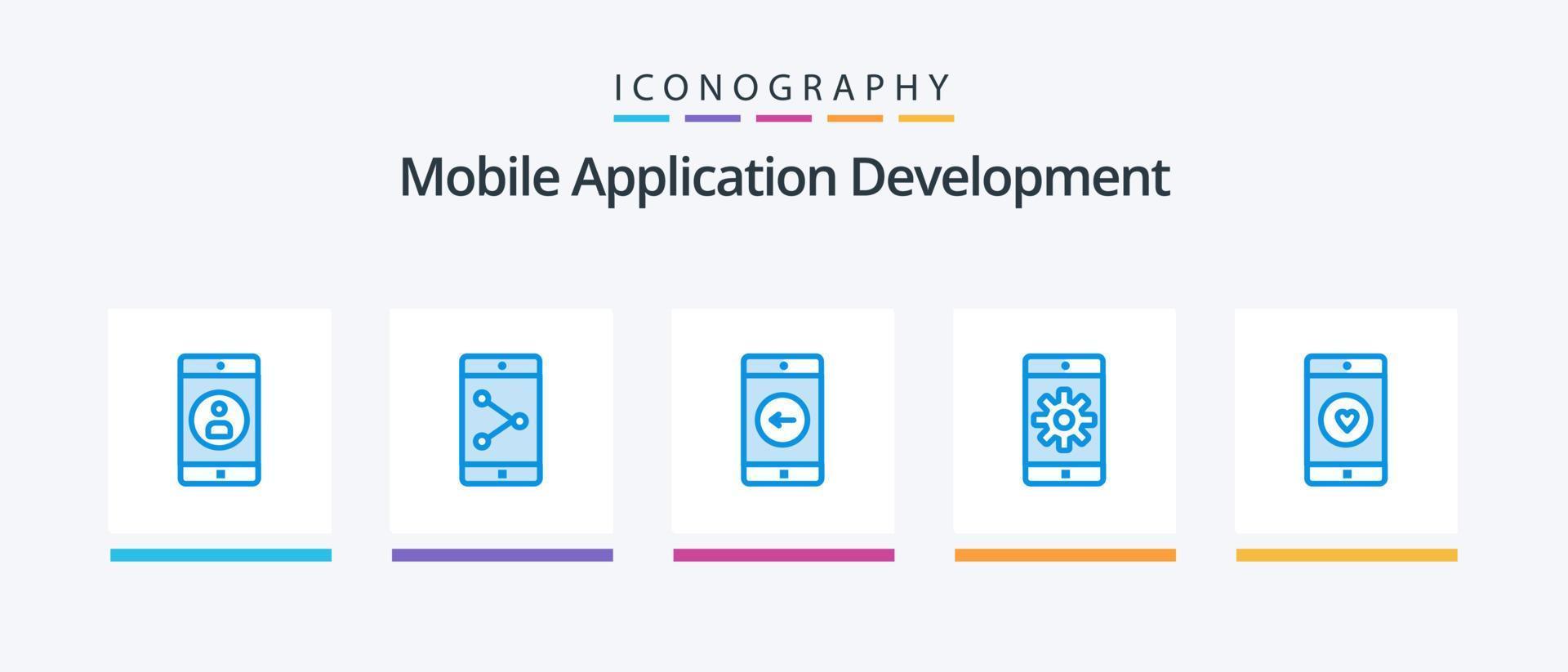 Mobile Application Development Blue 5 Icon Pack Including mobile application. application. mobile. setting. mobile. Creative Icons Design Free Vector