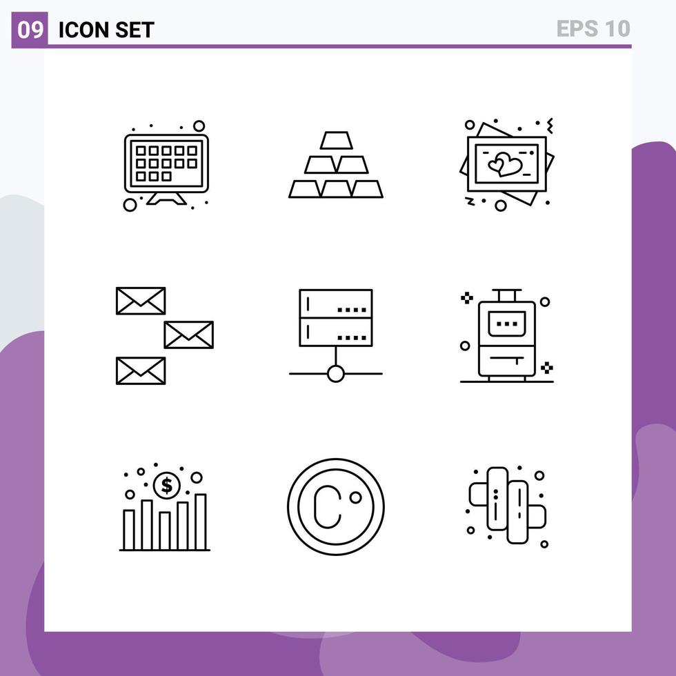 Group of 9 Modern Outlines Set for data envelope heart email contact Editable Vector Design Elements