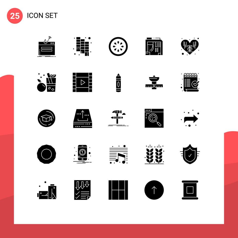 Pictogram Set of 25 Simple Solid Glyphs of heart computer cucumber case atx Editable Vector Design Elements