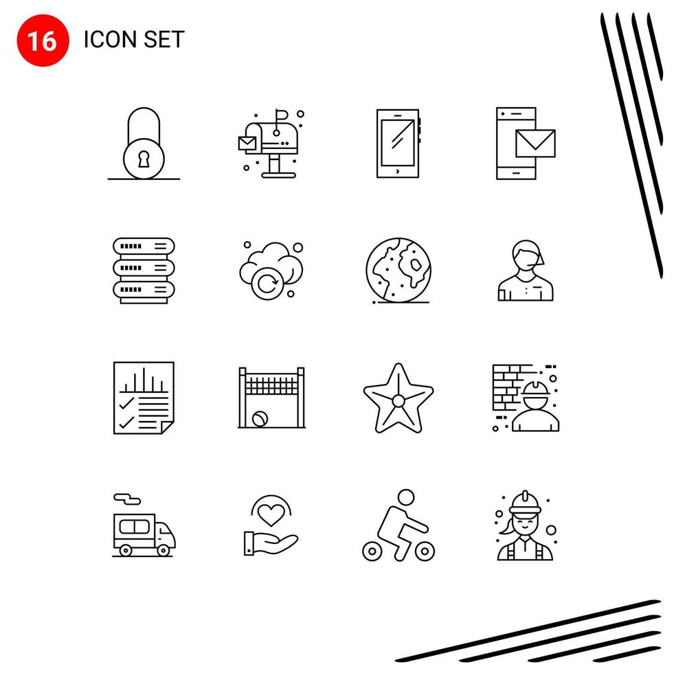 16 Universal Outlines Set for Web and Mobile Applications computing phone smart phone mobile contact Editable Vector Design Elements Free Vector