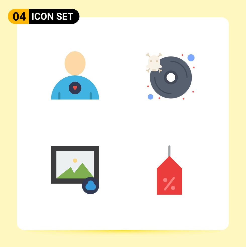 Group of 4 Flat Icons Signs and Symbols for favorite photo database server label Editable Vector Design Elements Free Vector