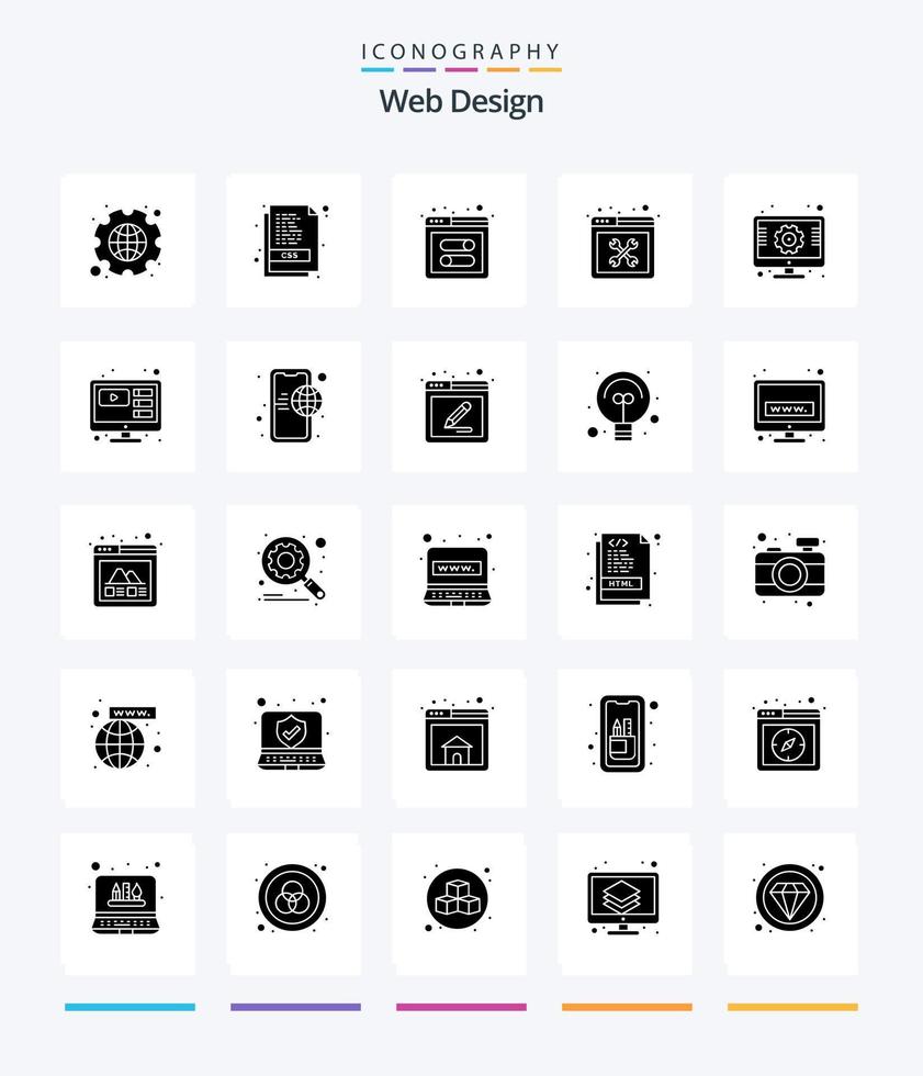 Creative Web Design 25 Glyph Solid Black icon pack  Such As setting. web. development. setting. tools vector