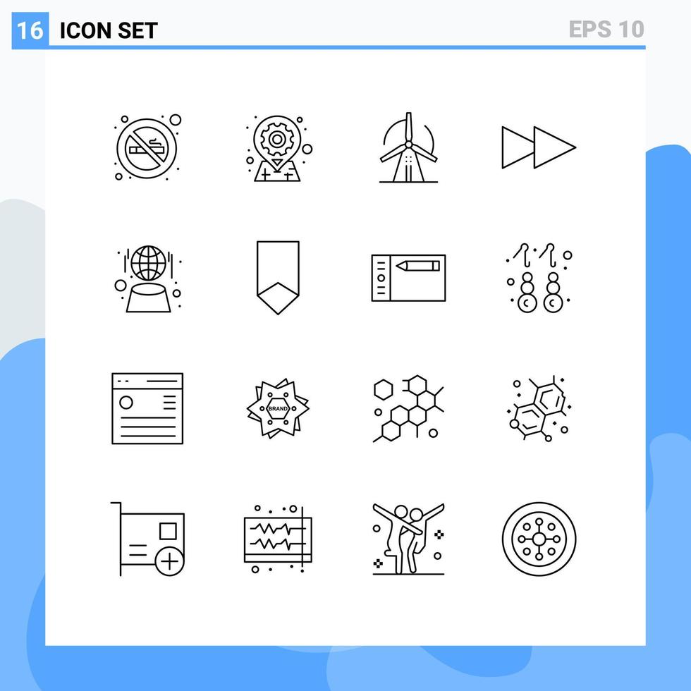 Set of 16 Vector Outlines on Grid for network globe turbine digital forward Editable Vector Design Elements Free Vector