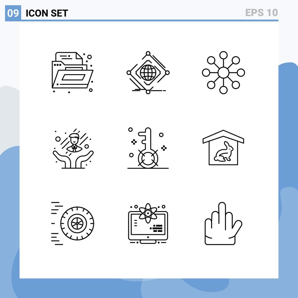 Set of 9 Vector Outlines on Grid for optimization keywords business engine customer care Editable Vector Design Elements Free Vector