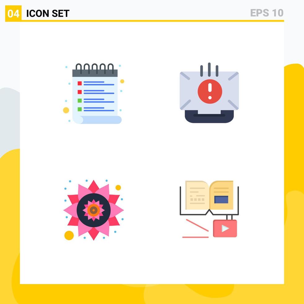 Set of 4 Vector Flat Icons on Grid for list india check list email rangoli Editable Vector Design Elements Free Vector