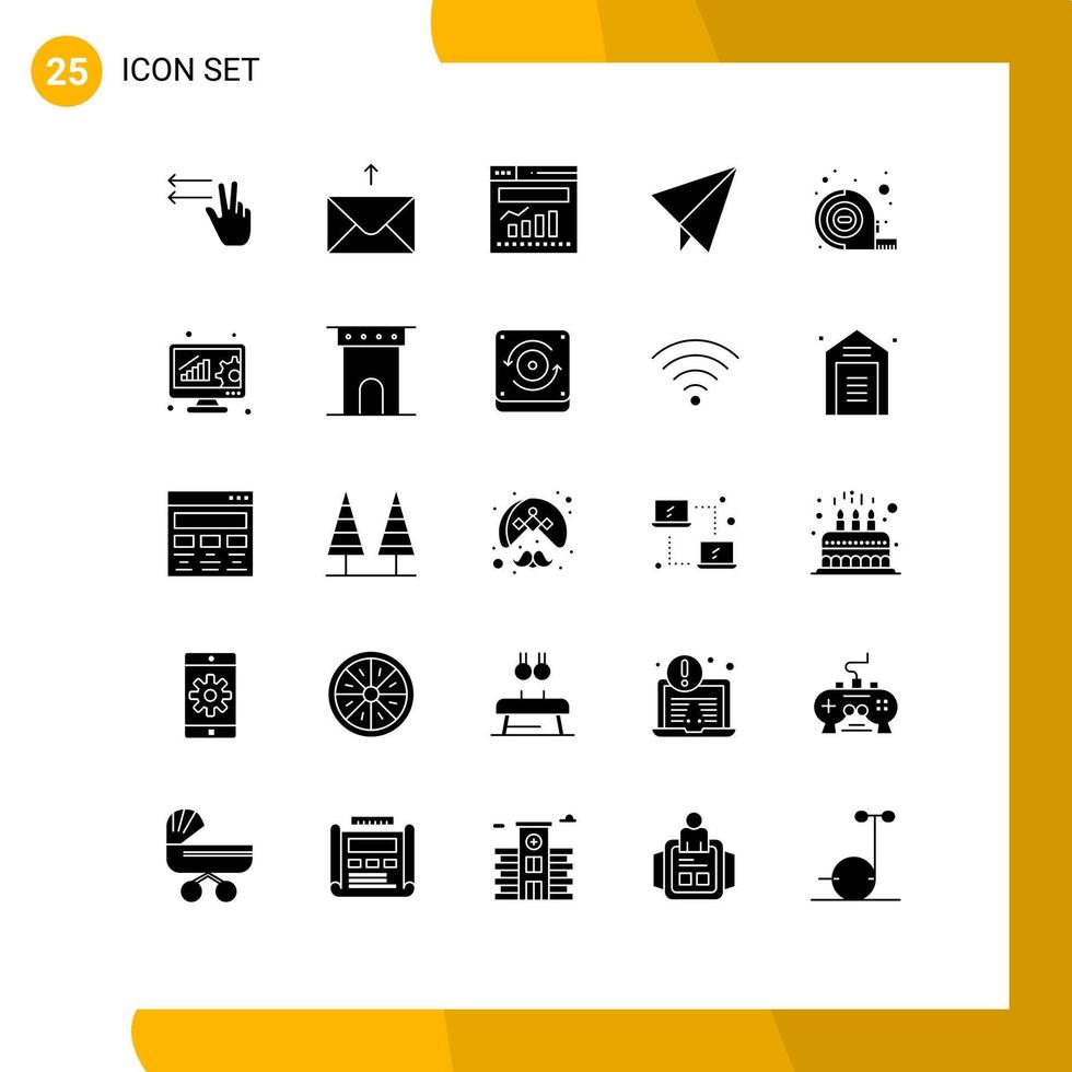 Mobile Interface Solid Glyph Set of 25 Pictograms of data management analysis internet tool measuring Editable Vector Design Elements