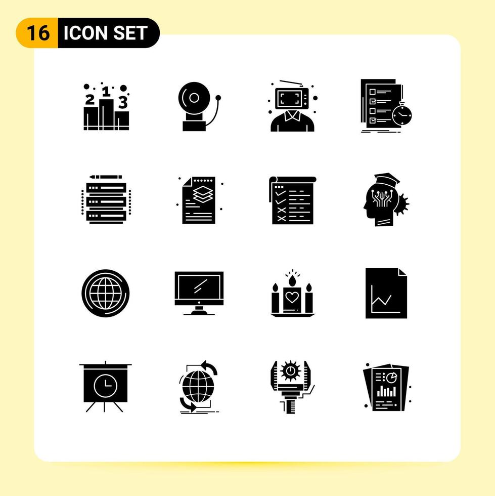 Universal Icon Symbols Group of 16 Modern Solid Glyphs of edit check customer list todo Editable Vector Design Elements Free Vector