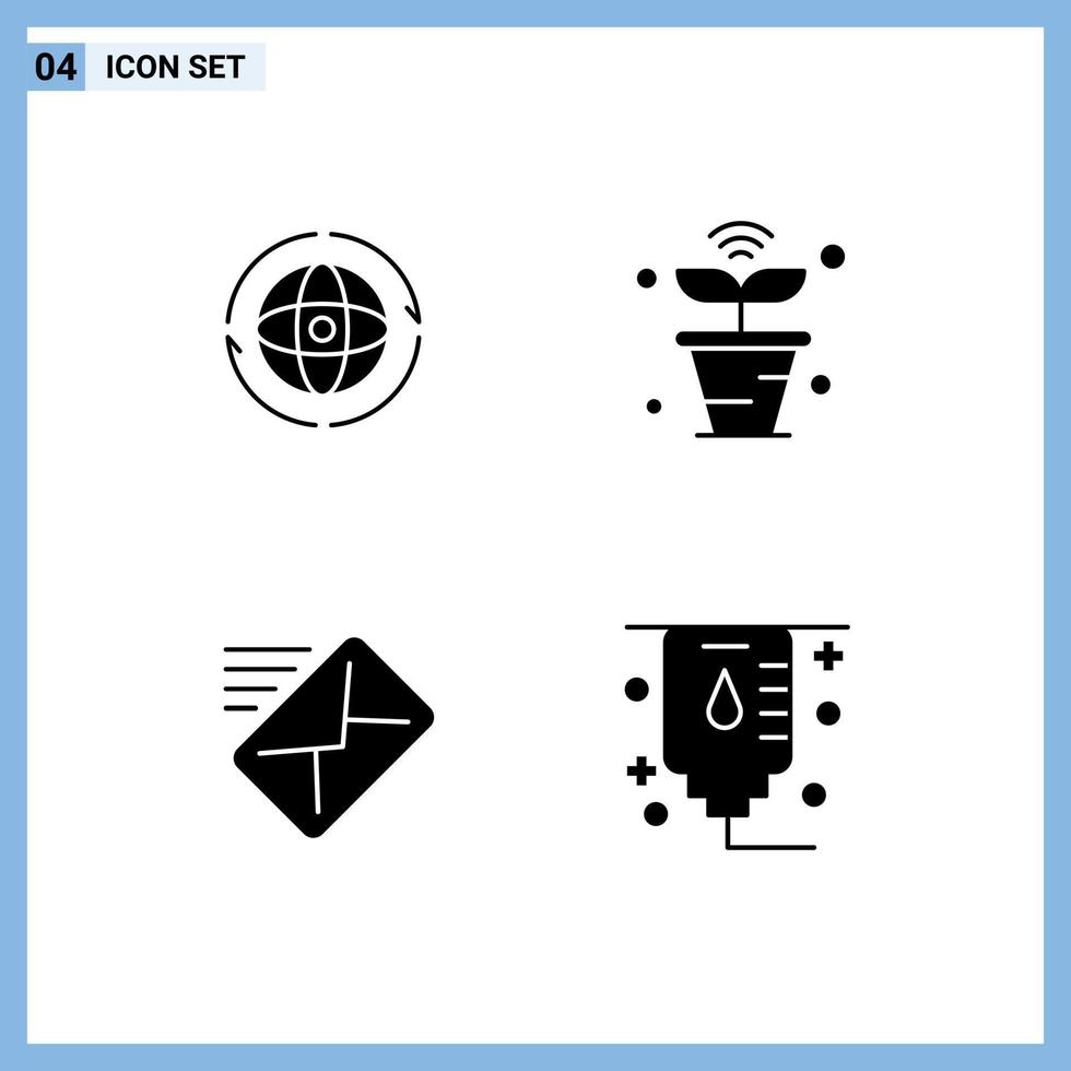 Set of 4 Modern UI Icons Symbols Signs for globe wifi attom iot mail Editable Vector Design Elements