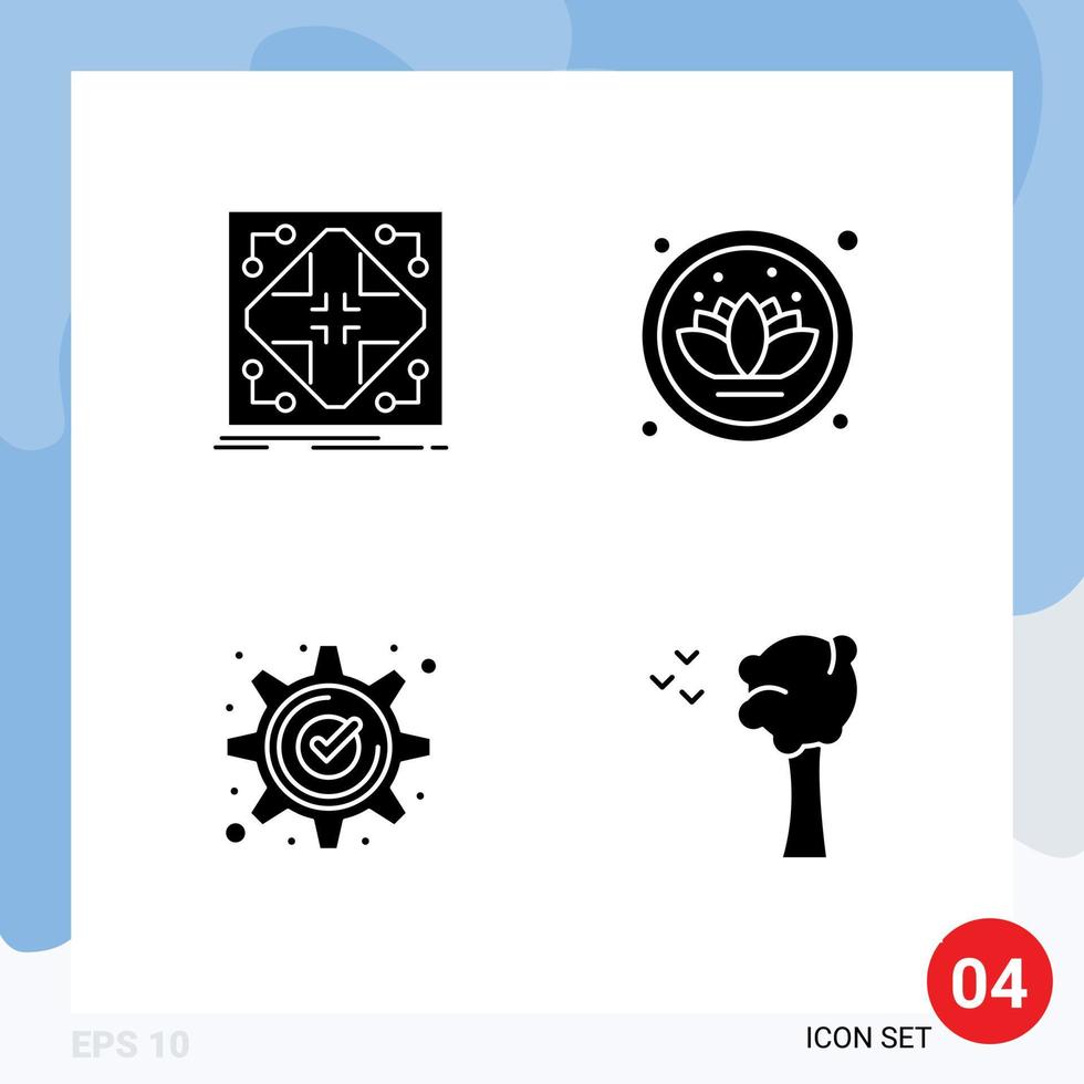 Mobile Interface Solid Glyph Set of 4 Pictograms of data approved matrix nature gear Editable Vector Design Elements