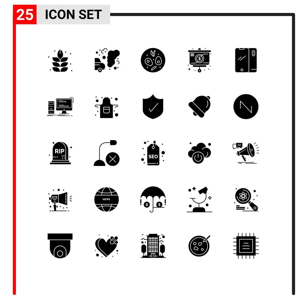25 Universal Solid Glyphs Set for Web and Mobile Applications android smart phone food phone chart Editable Vector Design Elements
