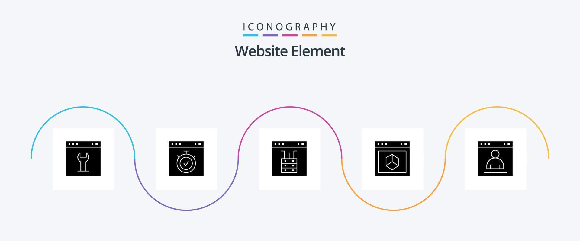 Website Element Glyph 5 Icon Pack Including element. application. stopwatch. server. interface vector