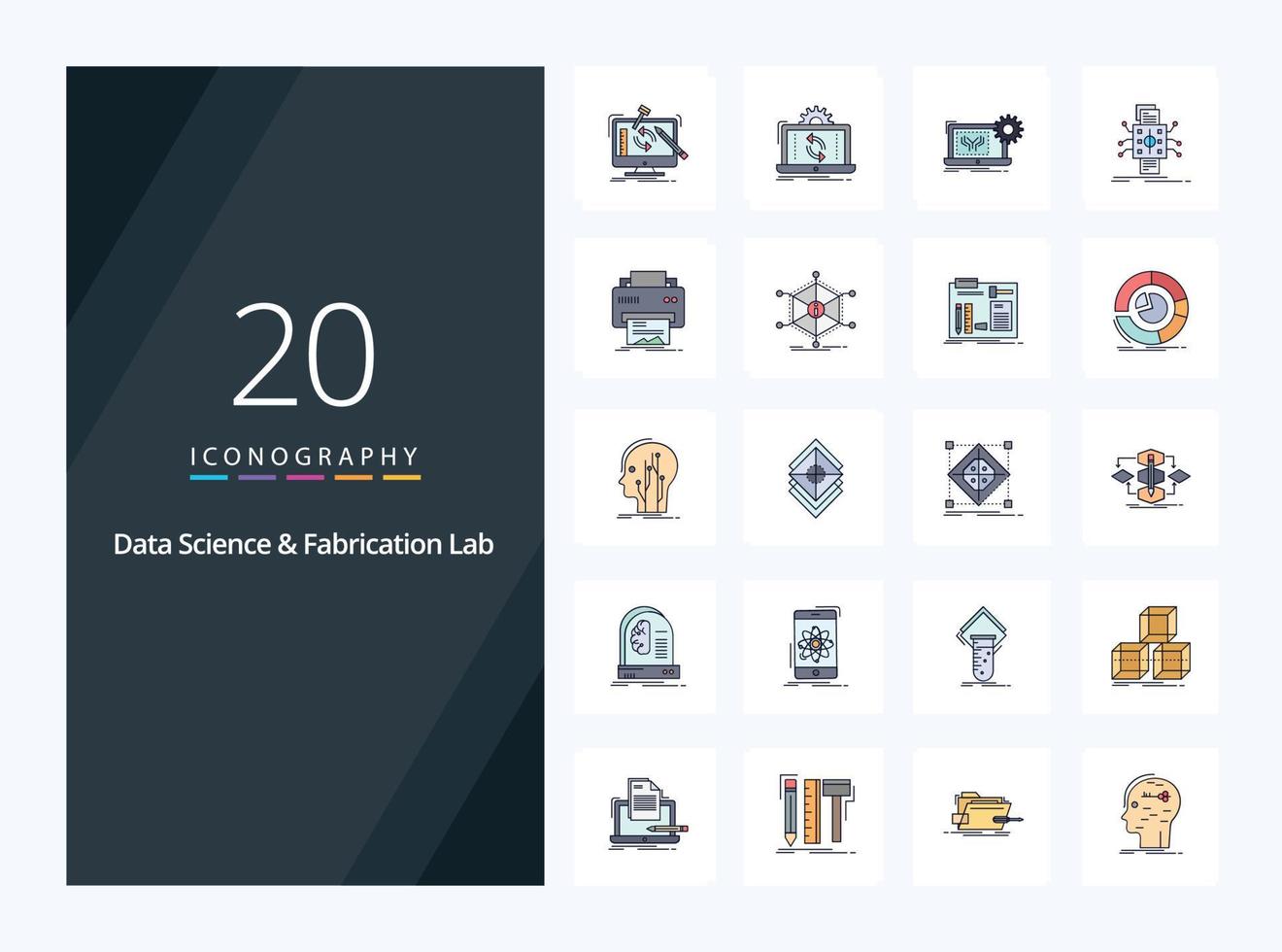 20 Data Science And Fabrication Lab line Filled icon for presentation vector