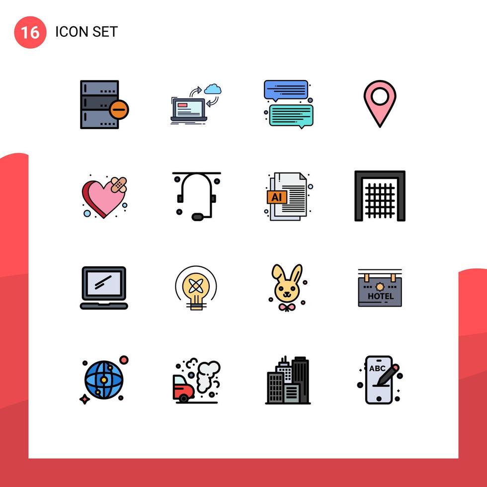 Set of 16 Modern UI Icons Symbols Signs for breakup pin dashboard marker message Editable Creative Vector Design Elements