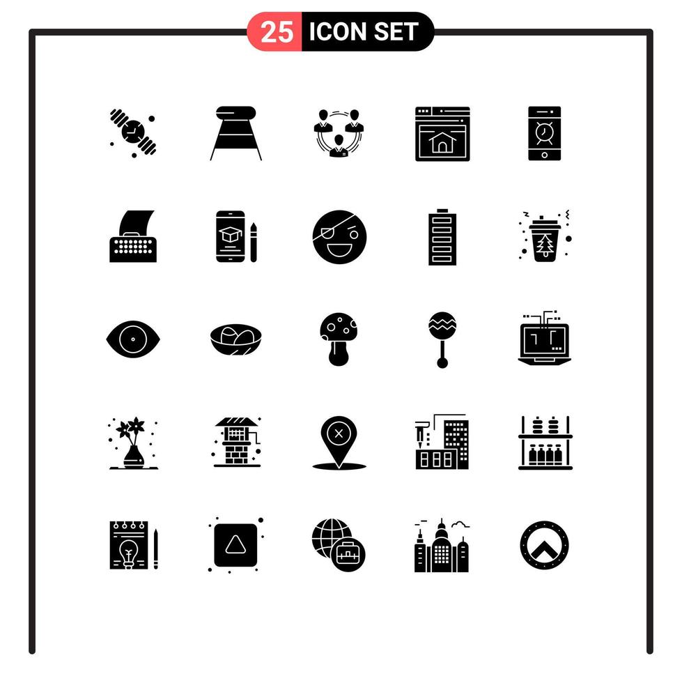 25 Universal Solid Glyphs Set for Web and Mobile Applications webpage seo team structure people Editable Vector Design Elements