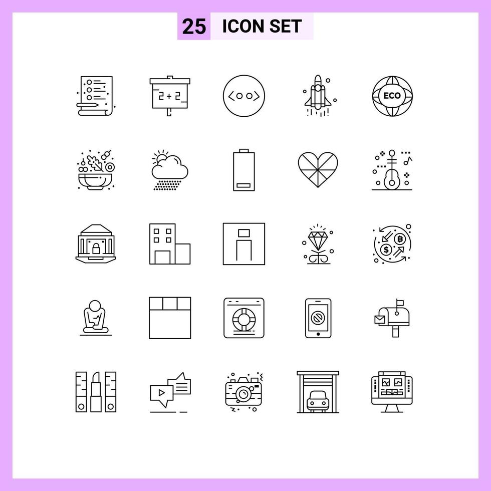 Pictogram Set of 25 Simple Lines of eco internet html global technology Editable Vector Design Elements