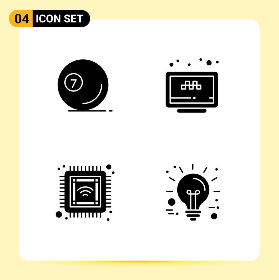 4 Creative Icons Modern Signs and Symbols of game website pool search computer Editable Vector Design Elements Free Vector