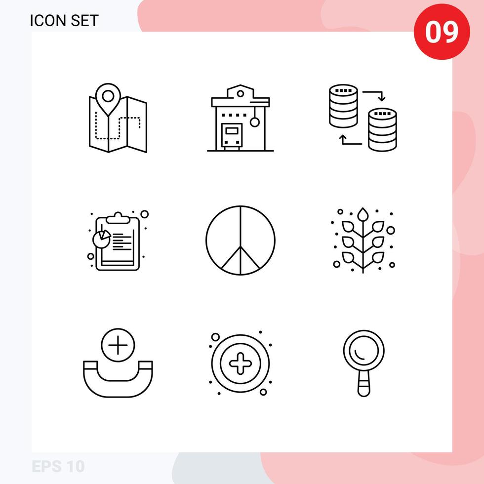 Group of 9 Modern Outlines Set for data analysis station share sql Editable Vector Design Elements Free Vector