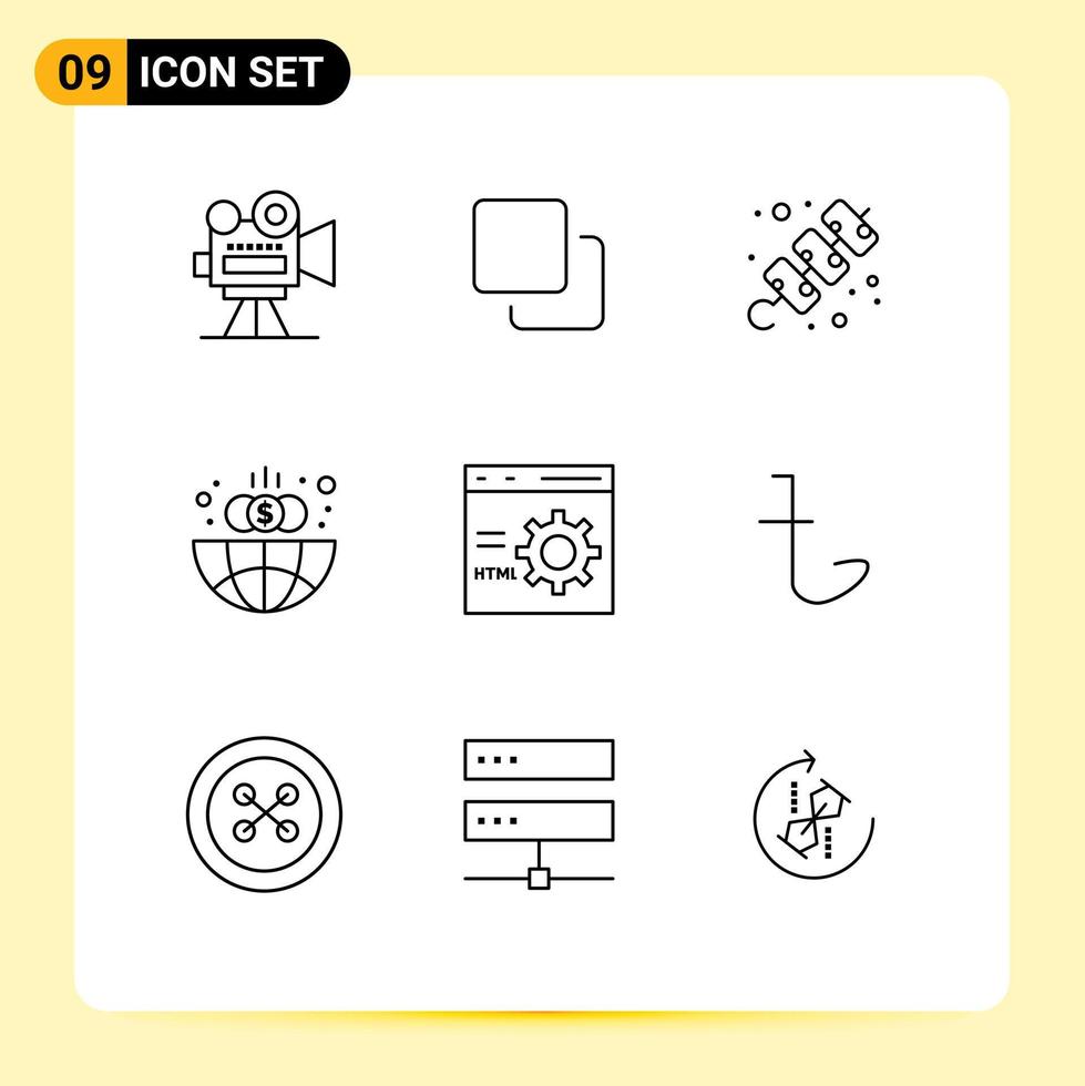 Set of 9 Vector Outlines on Grid for coding globe camping global business Editable Vector Design Elements Free Vector