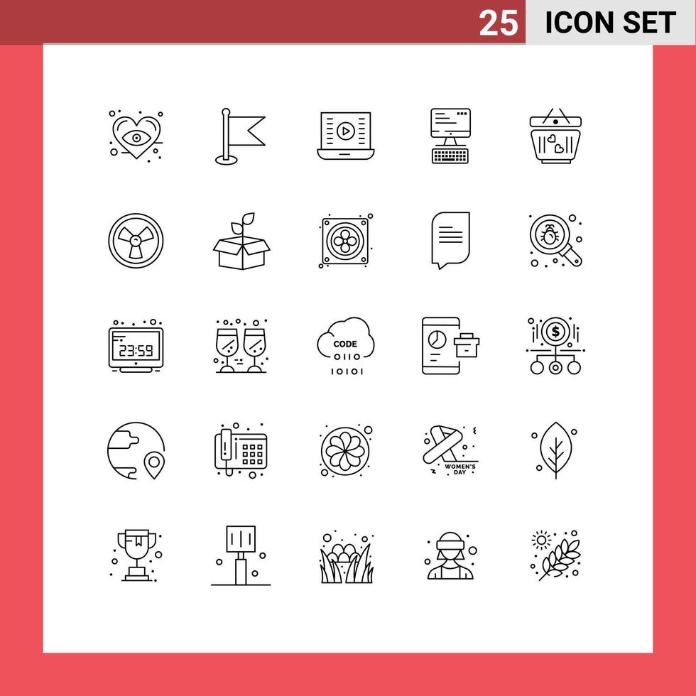 User Interface Pack of 25 Basic Lines of love computing media play monitor computer Editable Vector Design Elements