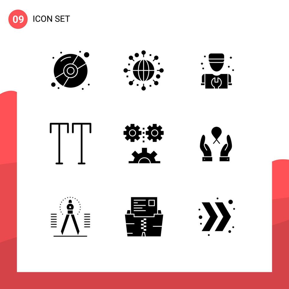 Modern Set of 9 Solid Glyphs and symbols such as mechanization engineering mechanic applied science caps Editable Vector Design Elements