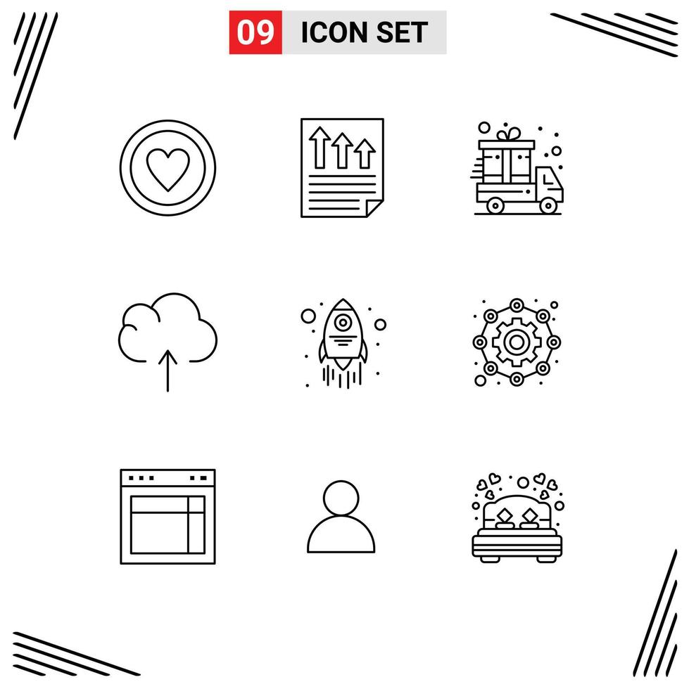 Group of 9 Modern Outlines Set for spaceship launch report upload cloud Editable Vector Design Elements Free Vector