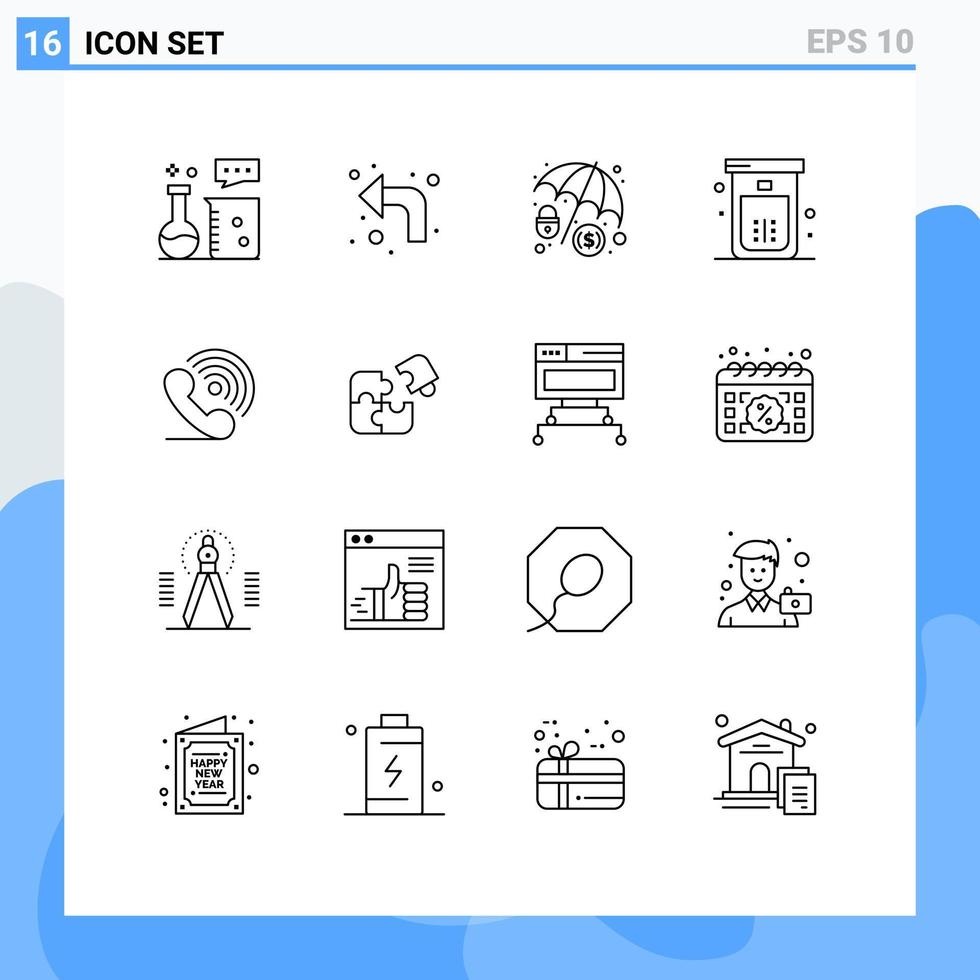 16 Universal Outlines Set for Web and Mobile Applications call shower left cleaning bath Editable Vector Design Elements Free Vector