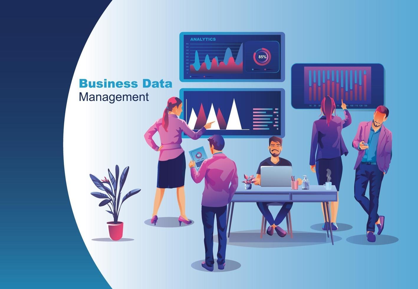 Business concept, social media, learning, People are creating business on internet, analysis and problem solving, Online business promotion, Brainstorming together in team work. Pro Vector