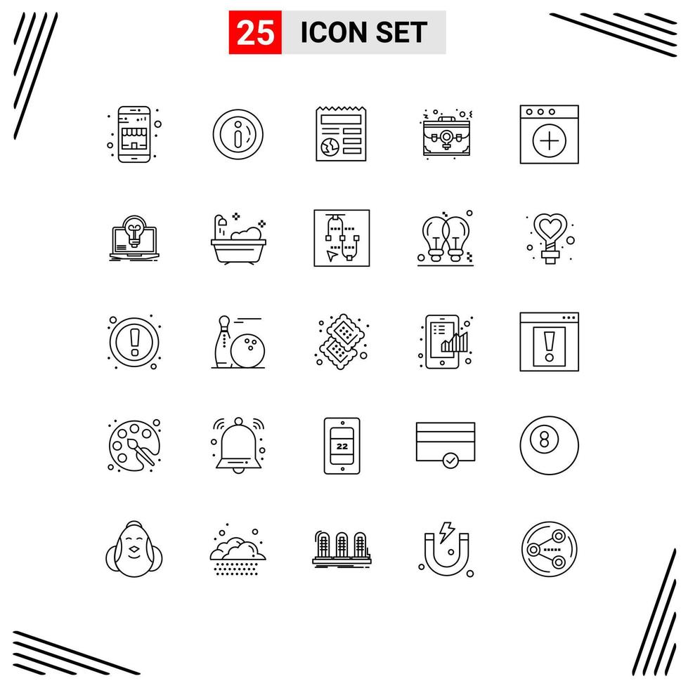 25 Universal Lines Set for Web and Mobile Applications app office basic employee bag Editable Vector Design Elements Free Vector