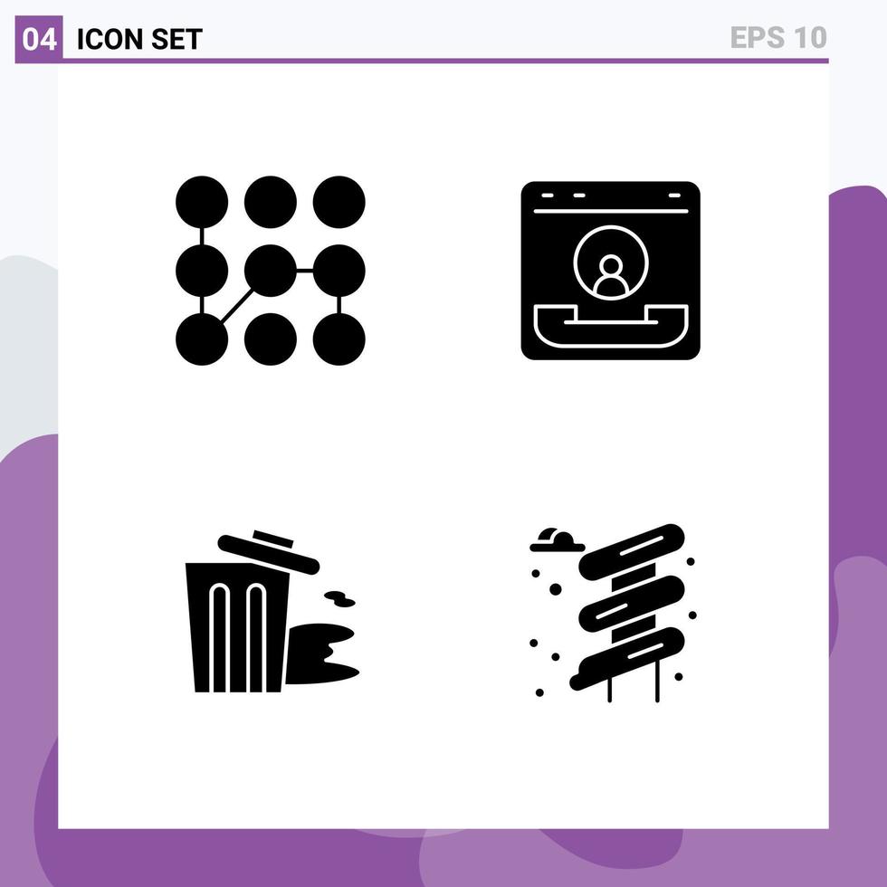 4 Thematic Vector Solid Glyphs and Editable Symbols of pattern environment security communication pollution Editable Vector Design Elements Free Vector