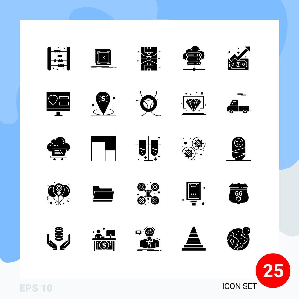 25 Thematic Vector Solid Glyphs and Editable Symbols of trend server connection problem network server ground Editable Vector Design Elements Free Vector