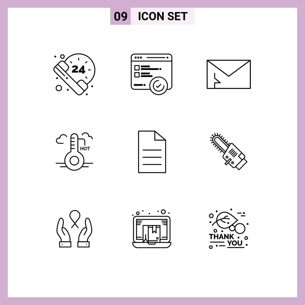 Set of 9 Modern UI Icons Symbols Signs for data update infected weather temperature Editable Vector Design Elements