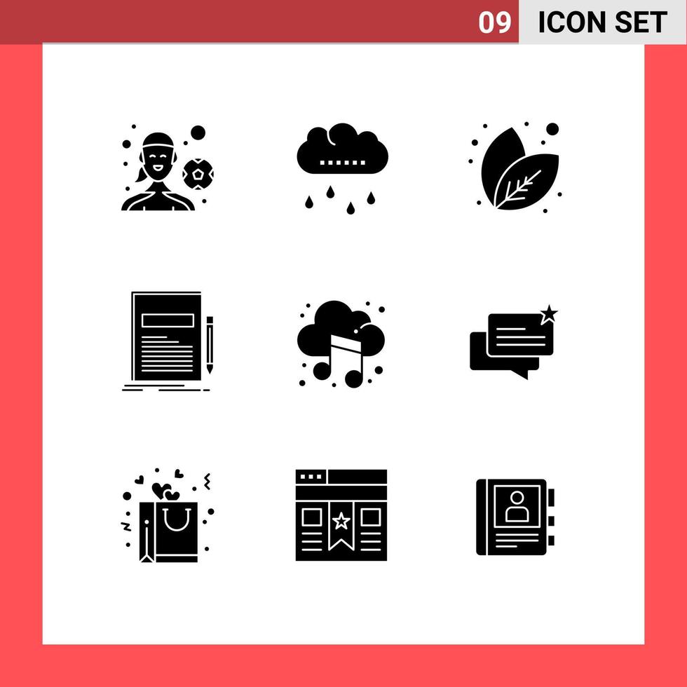 Pack of 9 Modern Solid Glyphs Signs and Symbols for Web Print Media such as cloud presentation leaf paper document Editable Vector Design Elements