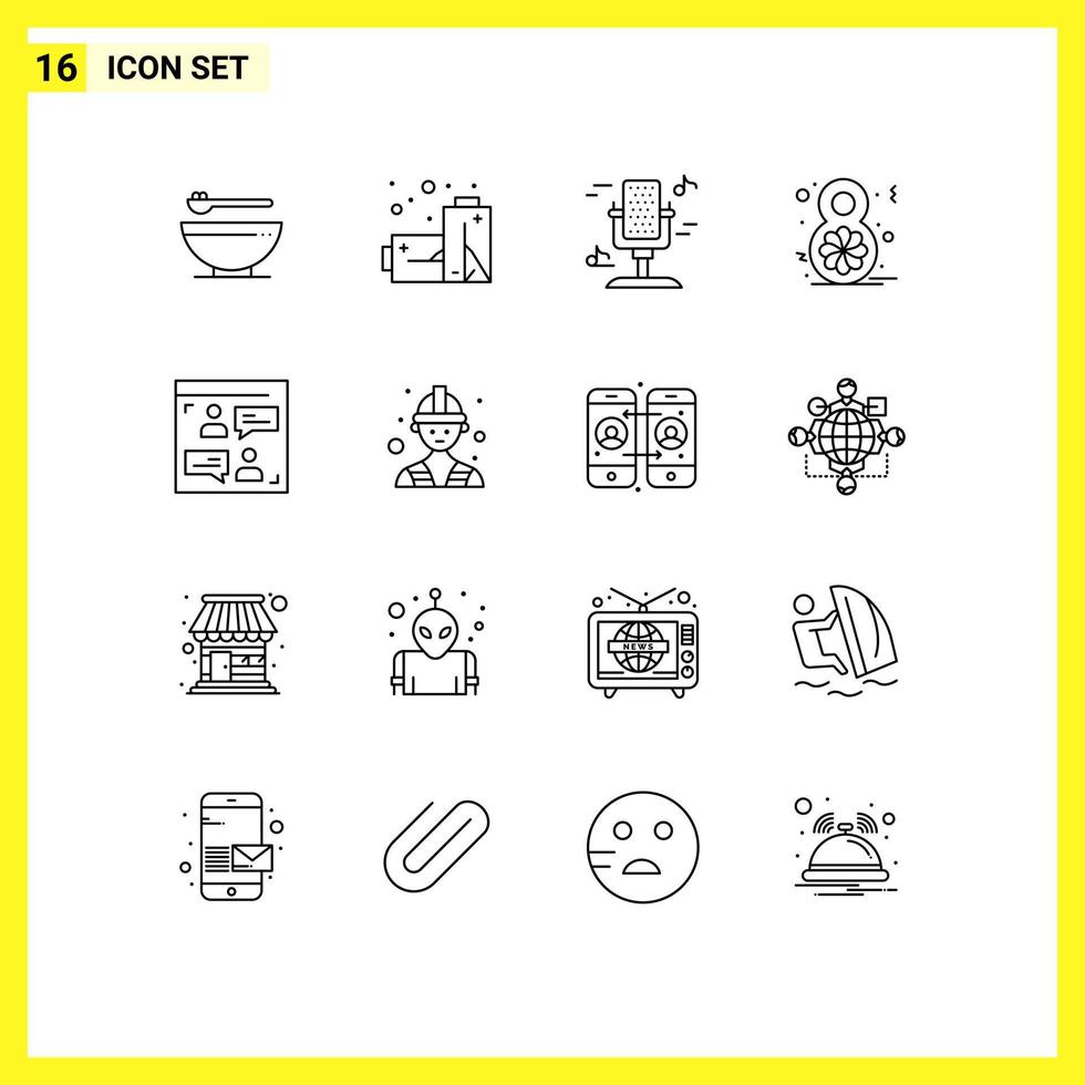 Mobile Interface Outline Set of 16 Pictograms of user web microphone celebrate flower Editable Vector Design Elements