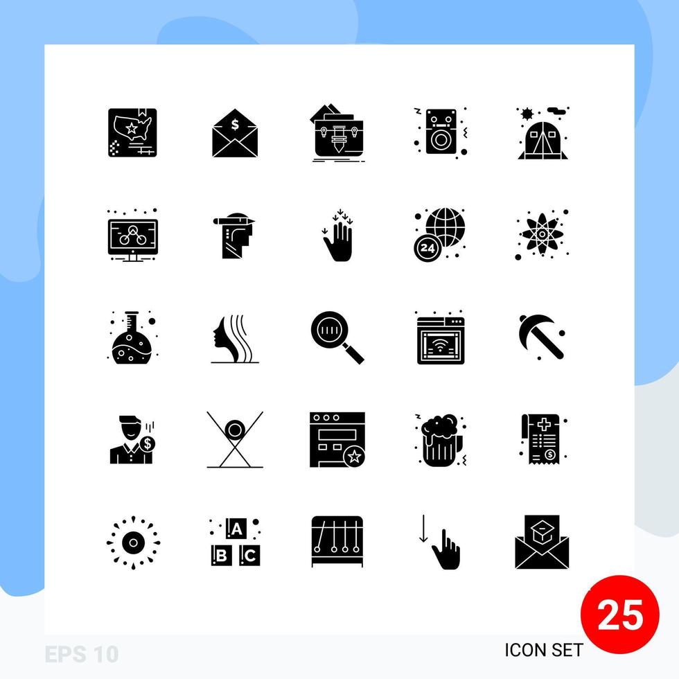 User Interface Pack of 25 Basic Solid Glyphs of player songs order audio folder Editable Vector Design Elements