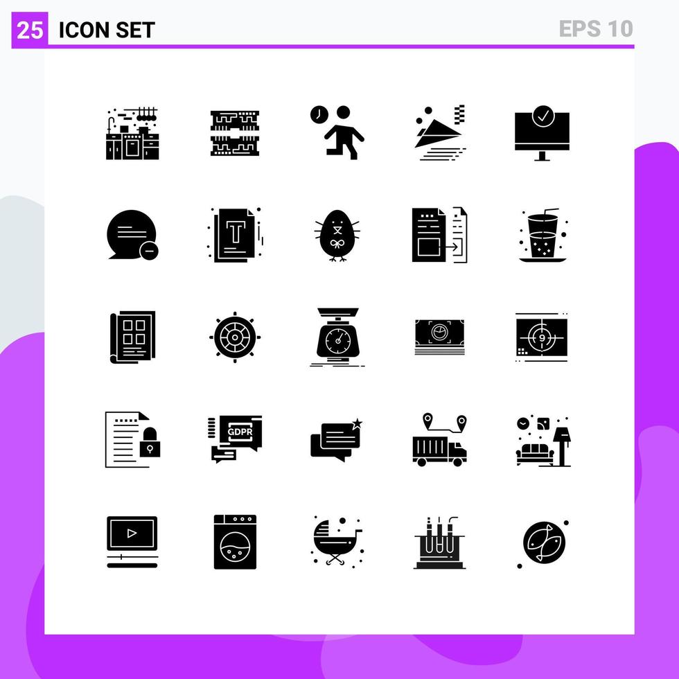 25 User Interface Solid Glyph Pack of modern Signs and Symbols of devices computers fast plane airplane Editable Vector Design Elements Free Vector