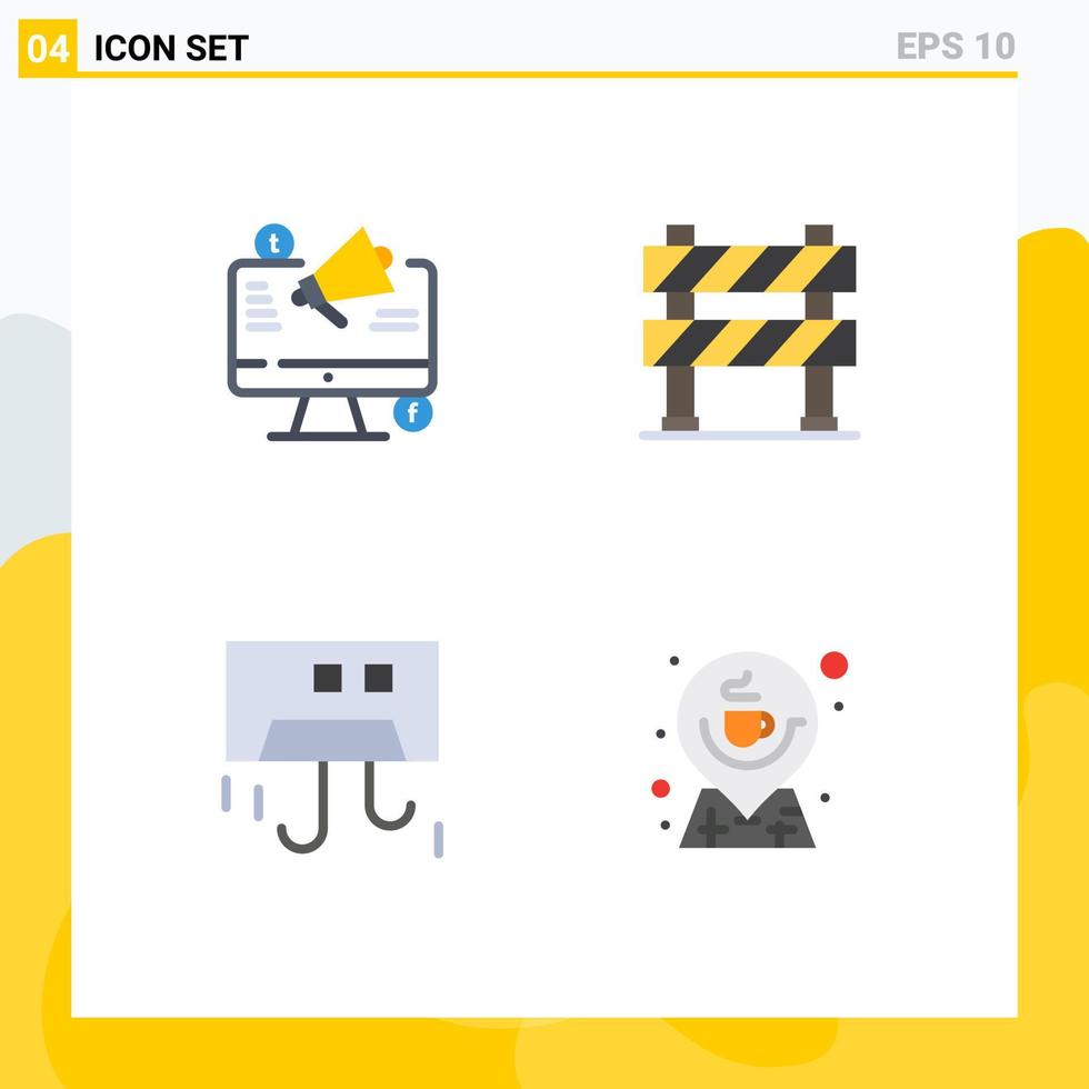 Editable Vector Line Pack of 4 Simple Flat Icons of marketing under construction megaphone boundary condition Editable Vector Design Elements Free Vector