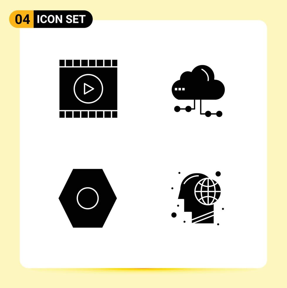Group of 4 Solid Glyphs Signs and Symbols for media settings web computing earth Editable Vector Design Elements Free Vector and Free SVG